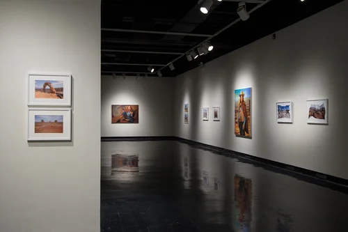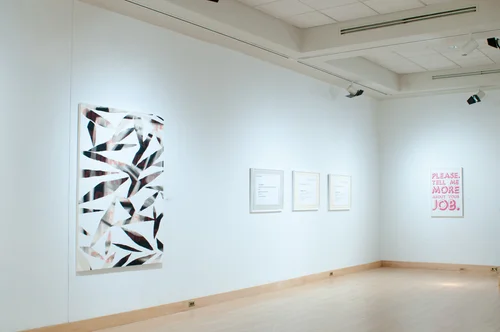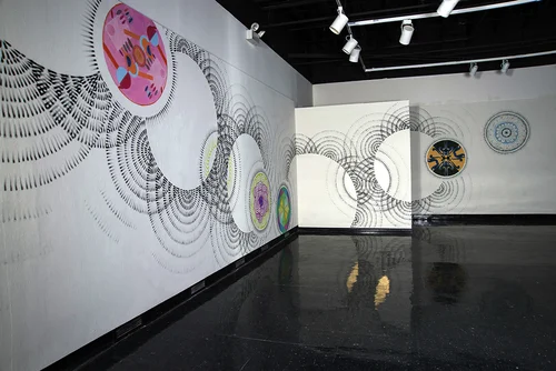 “Off the Wall", was an exhibition inspired by the minimal wall drawings and sculptures of Sol LeWitt. This two-part exhibition traced the history of Sol LeWitt’s relationship with New Mexico State University (NMSU) from his first visit to Las Cruces in 1979, to the extent of his influence on a new generation of artists from across the world who use the surface of the wall as their canvas. Starting on August 29, 2014, the community members of Las Cruces, regional artists, gallery assistants and NMSU students began a collaborative public installation process (à la LeWitt's wall drawings) – creating works constructed directly onto the gallery walls. Part performance, part exploration into social practice and exhibition design, this group show created a conversation revealing the intricate actions employed when creating a minimal art work.